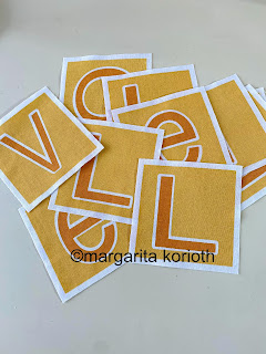 For the backing fabric I wanted to record the city and the year of this temperature quilt. Tiles were painted with the letters of my city which is Collierville and the year 2020.