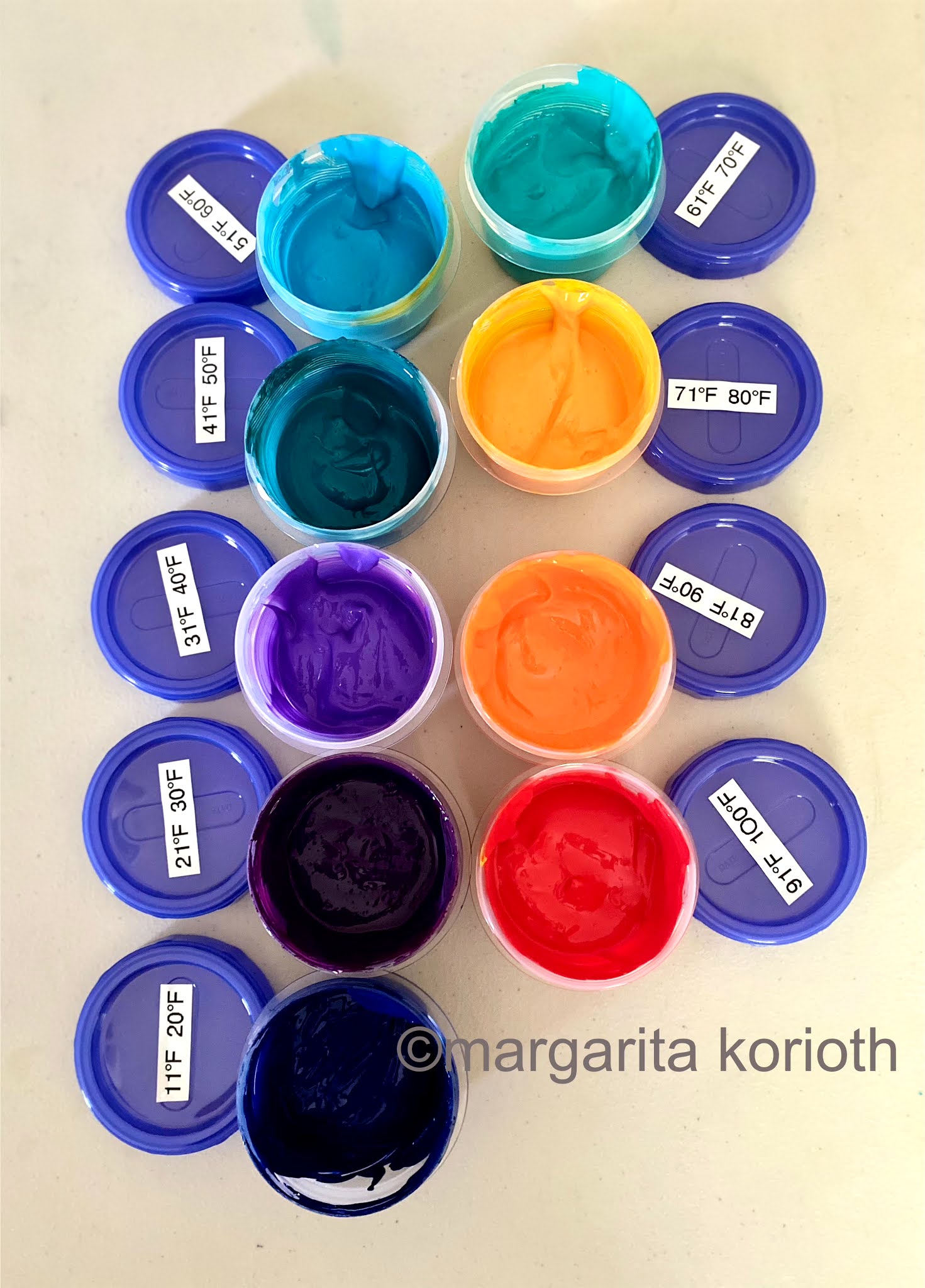 When I read about the call from Modern Guild to create an exhibit of temperature quilts for QuiltCon 2022 I started to investigate. After reading and seeing beautiful quilts I decided to make one. Of course I had to put a twist on it. I challenged myself on doing a pieced quilt with paper + paint and cloth.